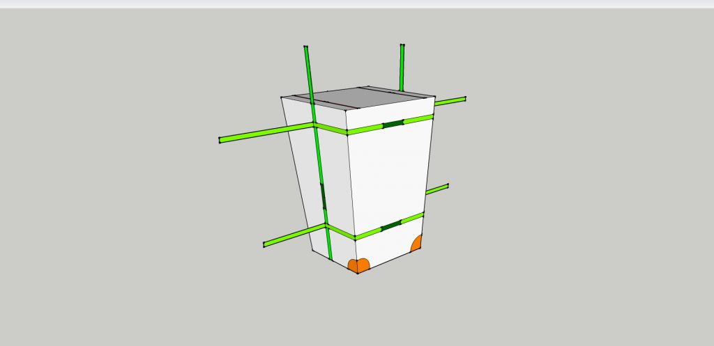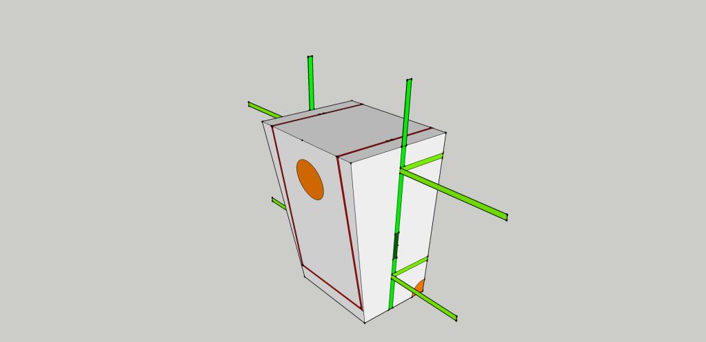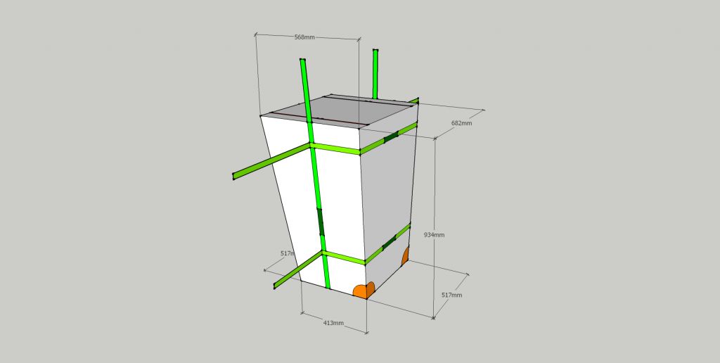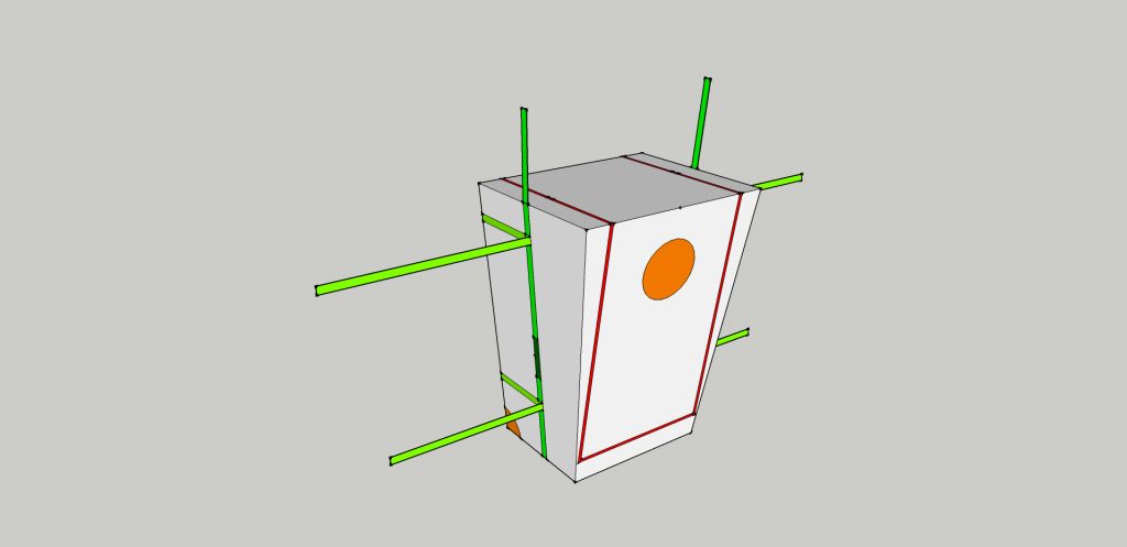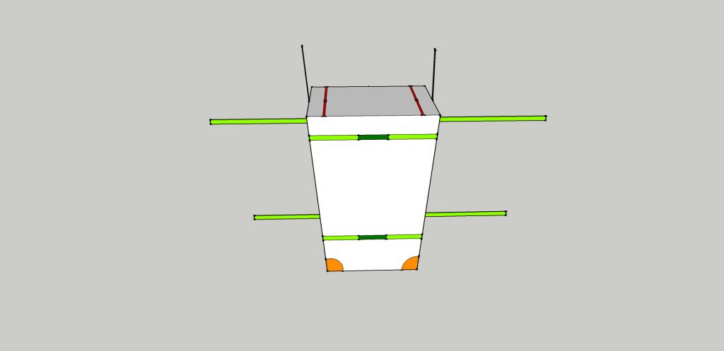 оранжевым цветом - усиленные места из нутри (не снаружи) ярко-зеленый цвет - лямки, пришитые к чехлу (лямки на чертеже 2,5см. Но можно 3 и 4 - как удобно) темно-зеленый лямки не пришитые к чехлу (ручки) В стороны торчат лямки с пряжками для утяжки. Красным цветом - змейка с двумя собачками, ею расстегивается клапан и откидывается вверх.