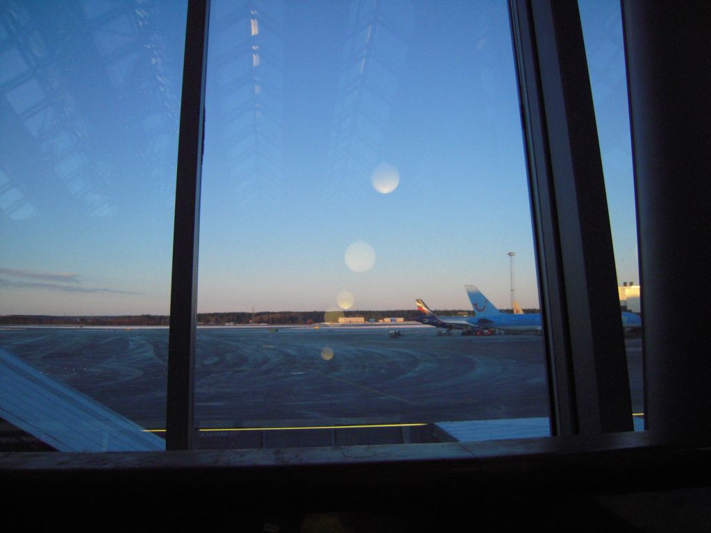 Вид из окна терминала на взлетные полосы. Жду знакомого жовтоблакиного литака.